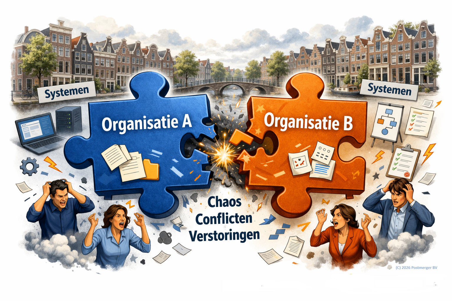 Twee organisaties samenvoegen lijkt op papier logisch. In de praktijk als je meer naar de details kijkt, voelt het vaak als twee puzzelstukken die nét niet passen. Dit omdat je twee werelden probeert samen te voegen.