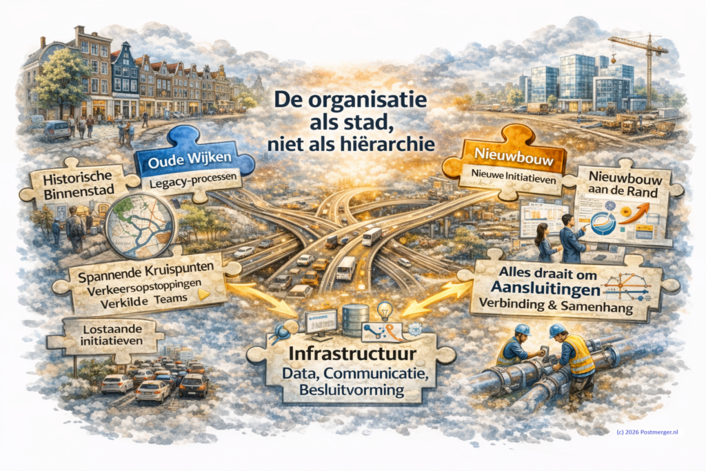 Maar als je eerlijk kijkt naar hoe organisaties écht werken, lijken ze veel meer op steden.